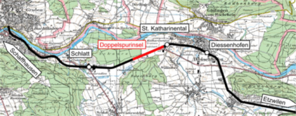 Die SBB baut in St. Katharinental eine neue Doppelspurinsel. Dabei handelt es sich um keine wesentliche Änderung der bestehenden Anlage. Mit den vorgesehenen Arbeiten und dem Bau des Kreuzungsgleises sind jedoch Umweltbeeinträchtigungen möglich, welchen mit entsprechenden Massnahmen begegnet werden muss. Obwohl das Projekt nicht UVP-pflichtig ist, wird deshalb ein Umweltbericht verfasst.
